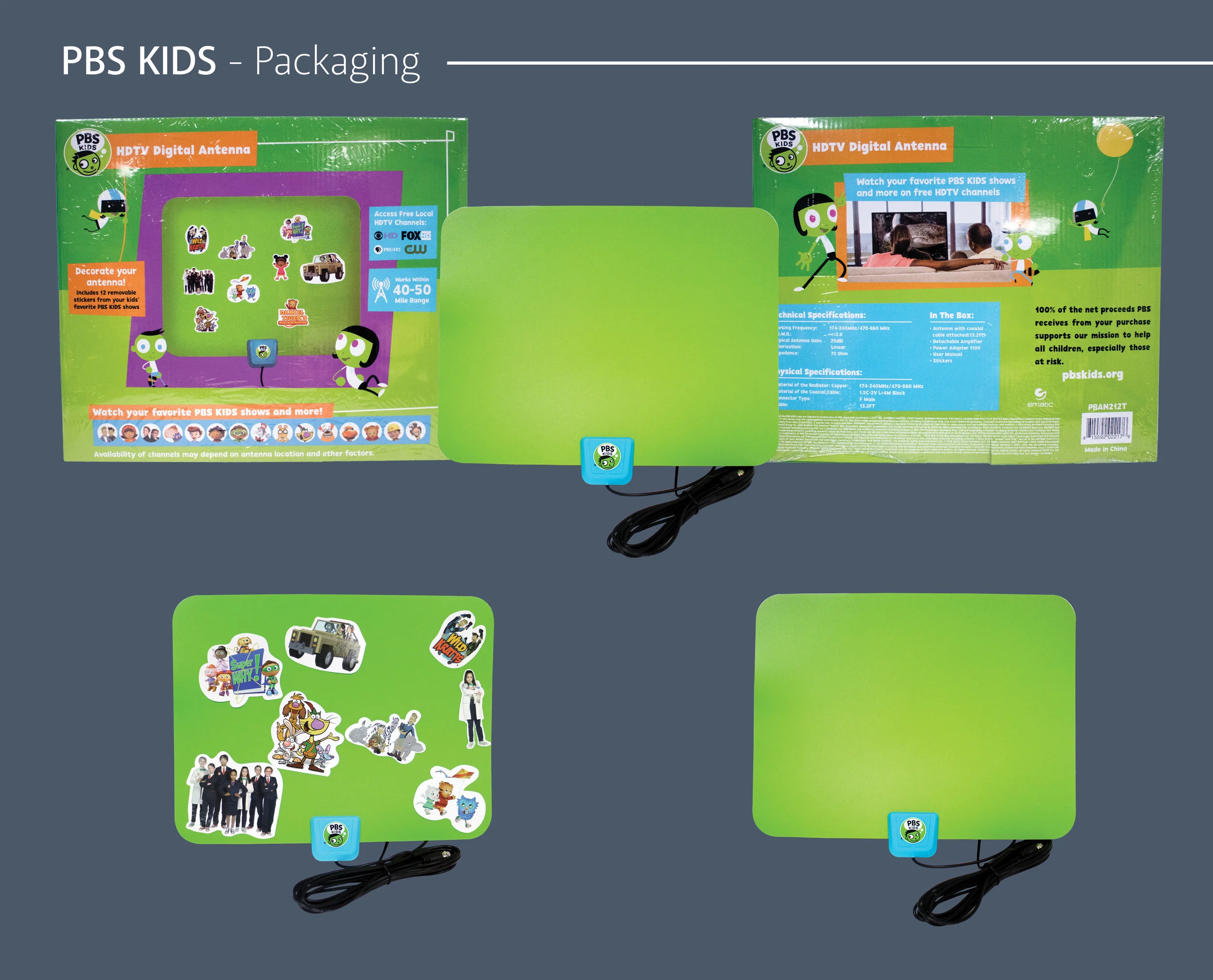 This product is a themed PBS KIDS antenna and was designed with a PBS & Ematic partnership. The product was designed for kids. This product also provides 12 removable stickers to help your kids show their appreciation with some of the PBS KIDS shows.