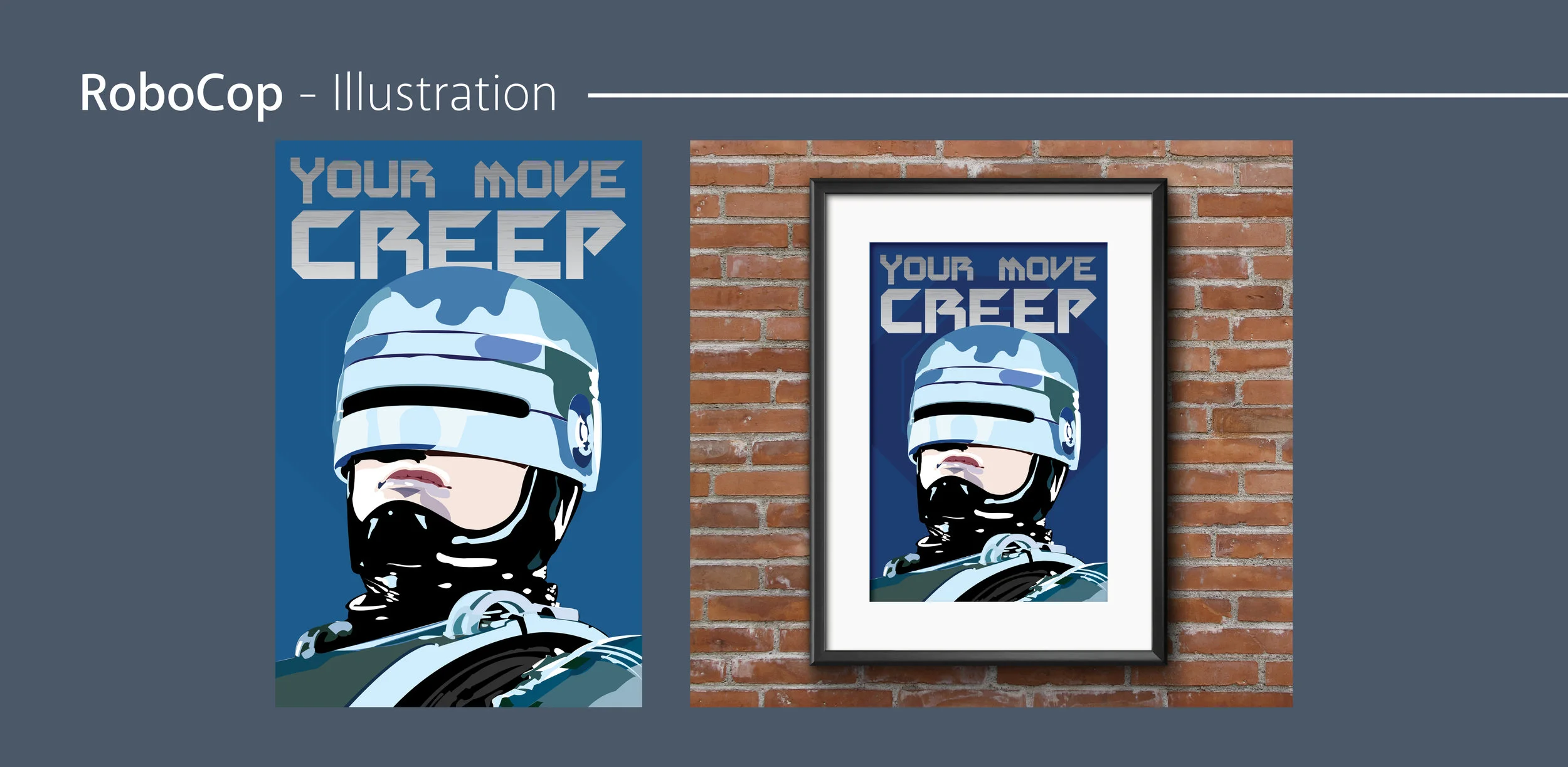This Illustration is a poster of Robocop, you can put this poster in your bedroom or office space.